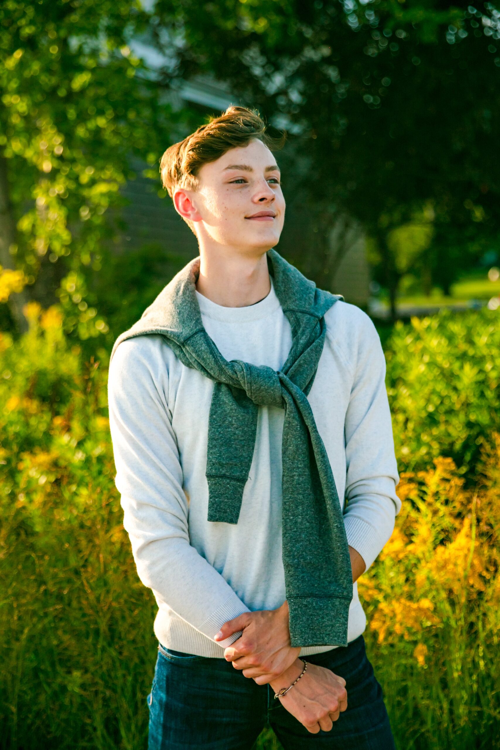 On the day of the shoot we’ll ease into being in front of the camera with different natural poses and candid prompts. Plan on changing into different outfits, eating some snacks, and smiling a lot! You can also consider bringing props that tell the story of you — sports equipment, a favorite sweater or book, or hobby you enjoy.